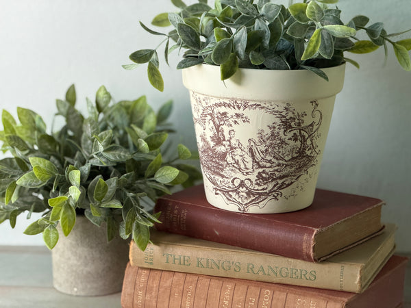 Soft distressing is intentionally built into the artwork, giving the designs a naturally aged feel from the very first use. A classic French palette of off-black, rich cobalt blue, and a deep plum-brown brings warmth and character, revealing subtle variation with each application. Thoughtfully scaled with a mix of full panels and coordinating elements, the imagery is designed to be used together on a single piece with ease.